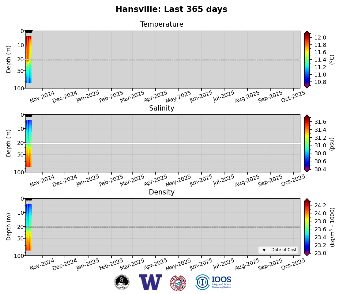 Mooring is at 47° 54.44' N, 122° 37.62' W, and 100 meters depth